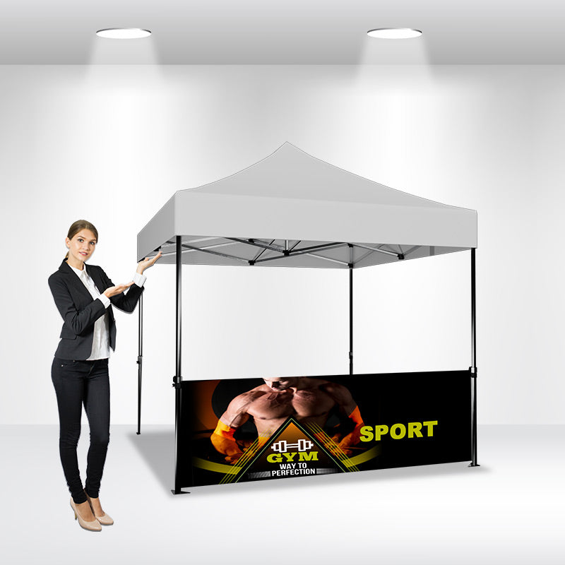 Pair your half wall with a custom-printed canopy and full walls for a complete branded tent solution that gets noticed.