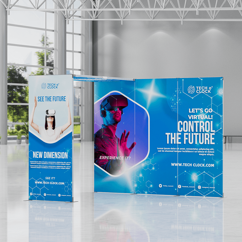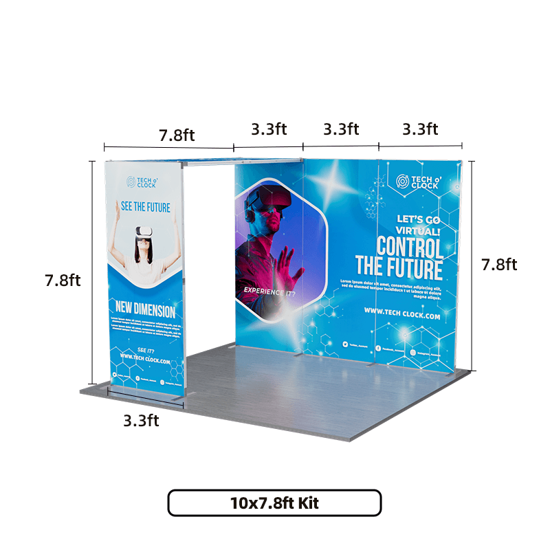 Compact Configuration: Features a wide back wall with one side panel—perfect for smaller booth footprints while still maximizing branding impact.