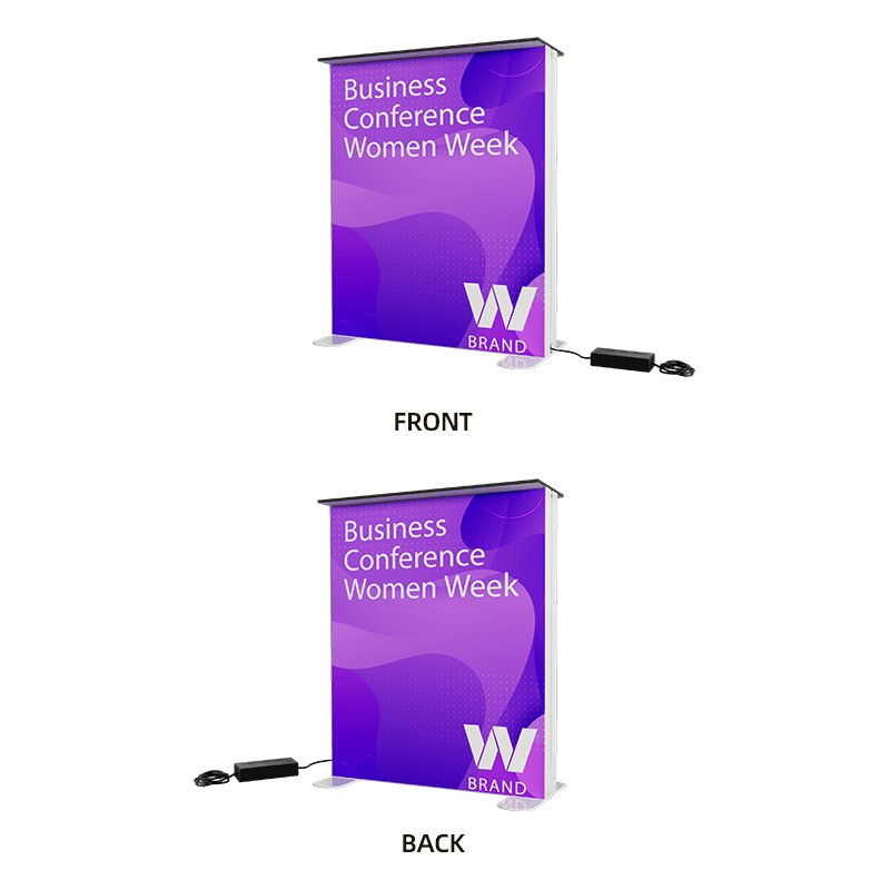 Backlit Design – LED edge lighting creates a vibrant glow that enhances your branding, even in dim venues.